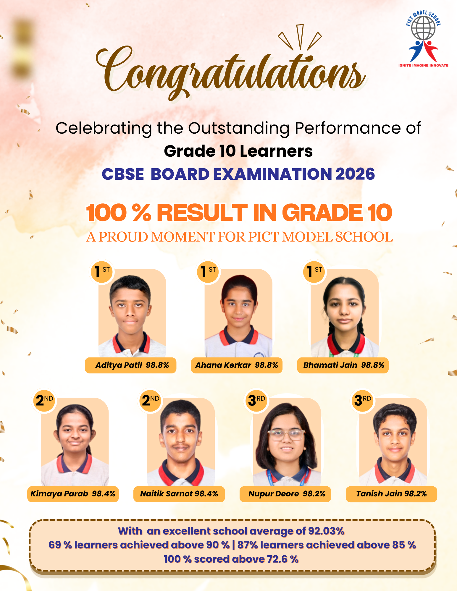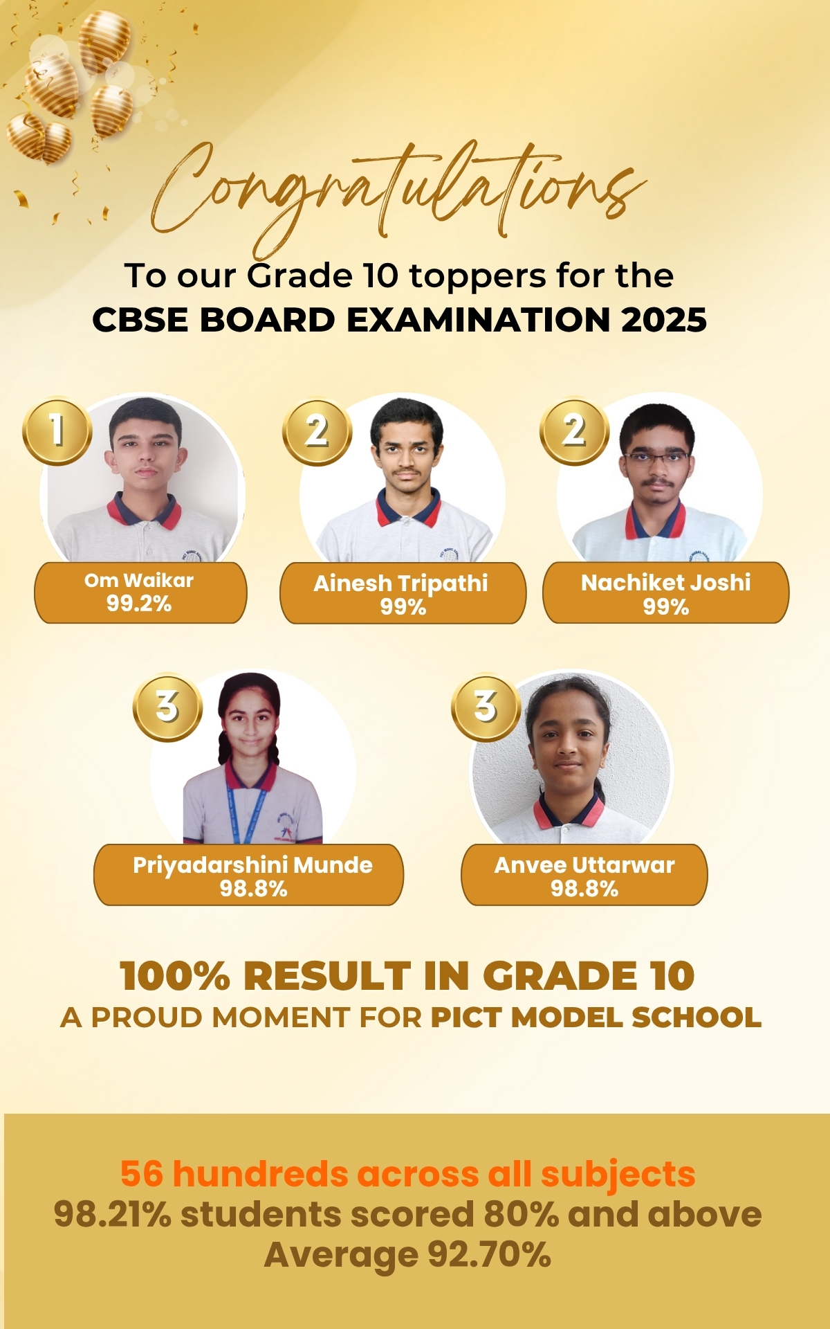 I wish to convey my heartfelt thanks for all the diligence and dedication with which entire PICT Team has worked throughout the year for 10th graders.