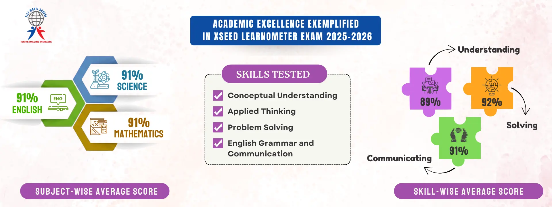 XSEED Learnometer is a computer-based benchmark assessment that assesses Conceptual Understanding, Applied Thinking and English Grammar & Comprehension at international standards.